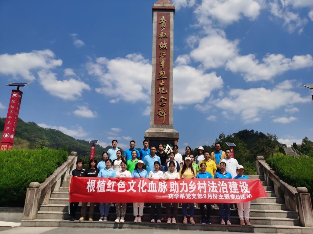 9月15日,药学系党支部组织全体师生党员前往习水县土城镇青杠坡村开展“根植红色文化血脉 助力乡村法治建设”主题党日活动。本次活动由党支部书记伍明江主持。