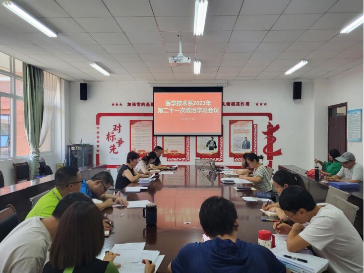 9月5日下午,医学技术系在系部会议室召开本年度第二十一次政治学习会议。会议由系党总支书记董亚云主持,全体教职工参会。