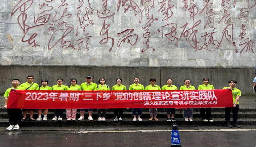 为深入学习宣传贯彻党的二十大精神,将党的二十大精神深植在群众心中,推动党的二十大精神进基层、进社区,真正做到“群众在哪里,宣讲就到哪里”,2023年7月8日,由25名学生志愿者组成的医学技术系暑期三下乡党的理论宣讲团到遵义市桐梓县娄山关街道进行党的理论宣讲。