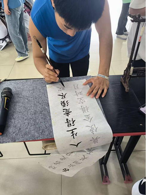 本次活动分为“艾意浓浓 粽享美好”“执笔书写 韵逸书香”“非遗蜡染 传承技艺”三个部分进行。同学们积极参与到活动的各个板块中,包粽子、书写节日祝福、玩获奖驱毒转盘、亲手DIY非遗文化蜡染,现场气氛十分活跃。