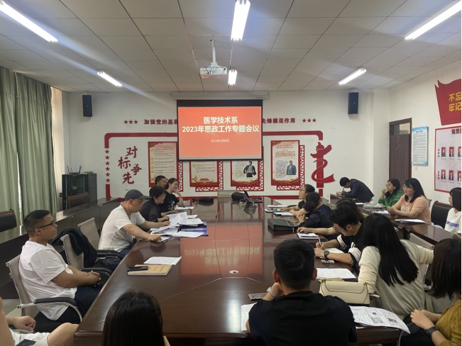 6月8日下午,医学技术系在系部A304会议室召开2023年思政工作专题会议。会议由系党总支书记董亚云主持,全体教职工参加会议。