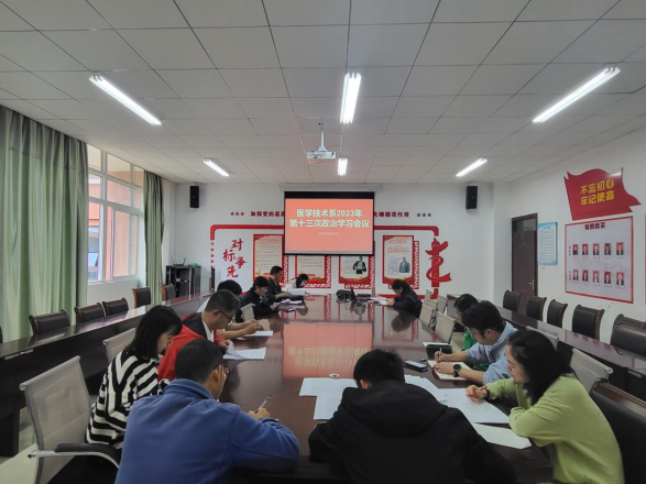 5月23日下午,医学技术系在系部会议室召开本学期第十三次政治理论学习会议。会议由系党总支书记董亚云主持,全体教职工参会。