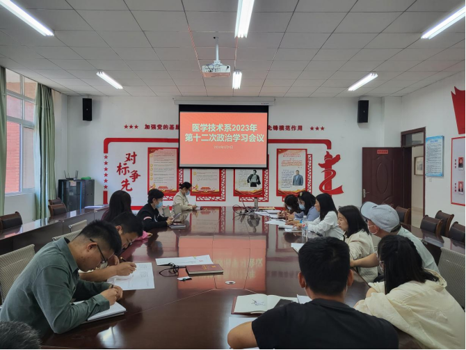 5月16日下午,医学技术系在系部会议室召开本学期第十二次政治理论学习会议。会议由系党总支书记董亚云主持,全体教职工参会。