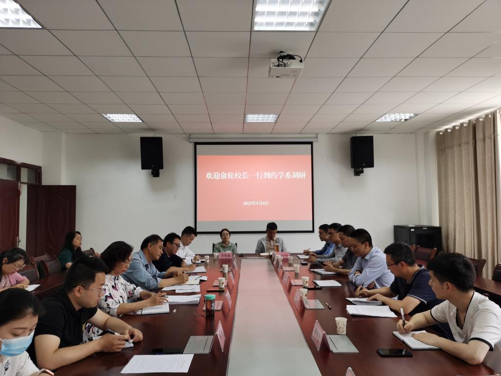 5月6日,学校党委副书记、校长俞松到药学系调研教学科研、专业建设、升本准备等工作,党政办、组织人事处、教务处、科研处、学生处、后勤管理处、信息中心、升本办等部门负责人陪同调研。药学系领导班子成员、科室负责人、教师代表等参加调研座谈会。