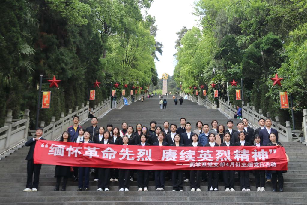 为深入学习贯彻习近平新时代中国特色社会主义思想和党的二十大精神,发扬长征精神,传承红色基因,继承和弘扬革命先烈优秀品质,增进爱党、爱国情感。4月25日下午,药学系党支部组织师生前往遵义市红军山烈士陵园、遵义会议会址开展“缅怀革命先烈,赓续英烈精神”主题党日活动。
