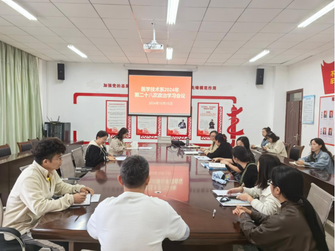 10月15日下午,医学技术系在系部会议室召开第28次政治学习会议。会议由系党总支书记董亚云主持,全体教职工参会。