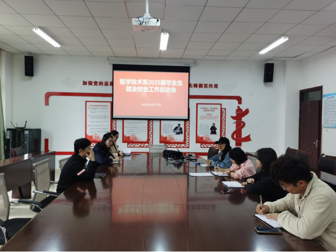 2024年10月17日下午,医学技术系在A304会议室召开2025届毕业生就业创业工作启动会,会议由医学技术系党总支书记董亚云主持,系党总支副书记代晖、学生工作办公室副主任赵欣、系就业工作人员颜学森及全体2025届毕业班辅导员参会。