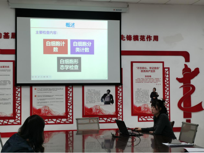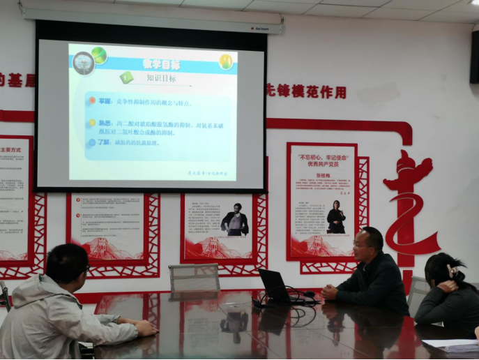 本次业务学习活动主要由两位教师代表进行15分钟的教学展示。生化教研室的杨正久老师采用动画和视频方式,生动而形象地讲解了影响酶促反应速度的因素之一——抑制剂(包括竞争性抑制作用)的原理及其作用机制。临检教研室的张恋老师则对白细胞计数进行了深入浅出的讲解。