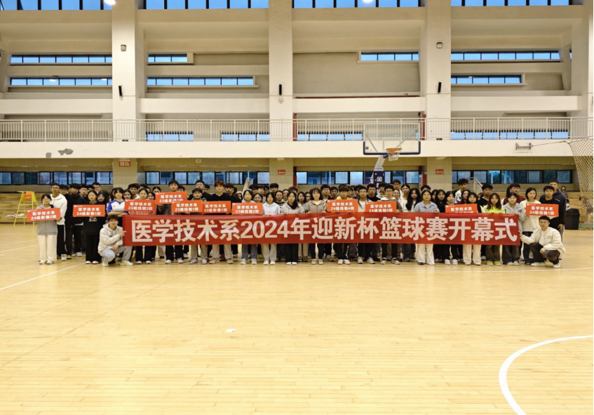 为进一步发扬医学技术系全体学生“团结、友爱、拼搏”的精神,增强系部各班凝聚力,迎接2024级新生的到来,医学技术系于2024年10月14日下午,在学校体育馆二楼篮球场馆举行2024年“迎新杯”篮球赛开幕式,医学技术系2023级和2024级各班参赛代表到场参加。