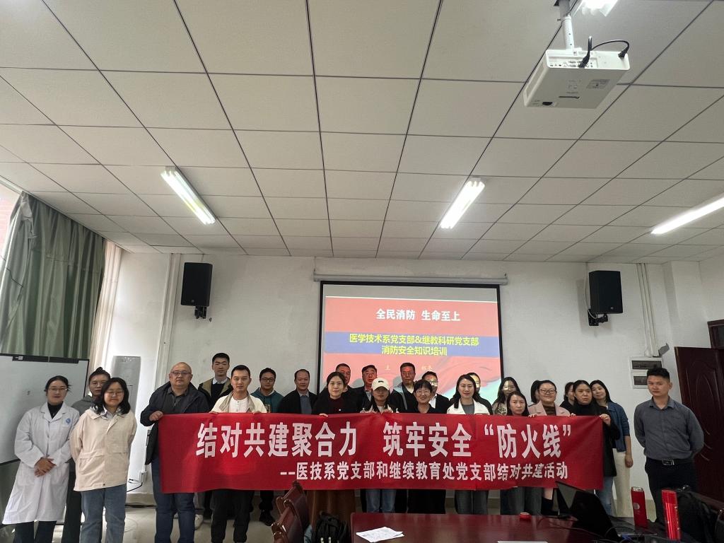 2024年11月12日,医学技术系党支部与继续教育处党支部以“结对共建聚合力 筑牢安全‘防火线’”为主题,开展结对共建消防安全知识培训活动。