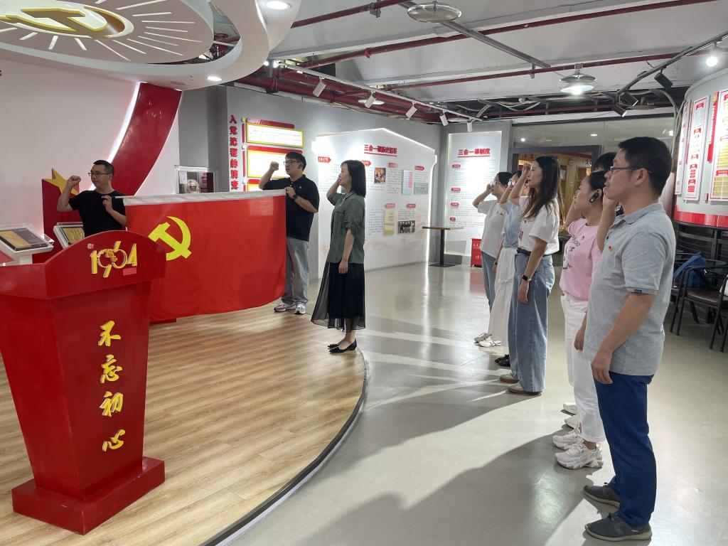 参观完毕后,全体党员神情庄重、精神饱满,高举右拳,面对鲜红的党旗,重温入党誓词。在铿锵有力的宣誓中,宣示着党员干部坚定不移的政治信念和矢志奋斗的坚强决心。活动结束后,党员们将根据本月政治理论学习内容进行自学。
