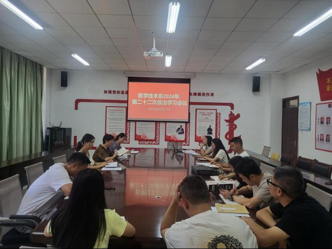 8月27日下午,医学技术系在系部会议室召开第22次政治学习会议。会议由系党总支书记董亚云主持,全体教职工参会。