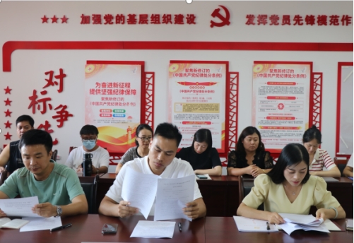 活动伊始,全体党员同志在基础教学部党员活动室面对鲜红的党旗,重温了入党誓词,现场交纳了8月的党费。随后全体党员同志集中学习了习近平在接见第33届奥运会中国体育代表团时重要讲话、习近平在纪念邓小平同志诞辰120周年座谈会上的讲话以及《中国共产党章程》等内容,曹娟、钟朝吉等同志还围绕“努力成为对得起‘老师’称号的大学教师”的主题做了研讨发言。