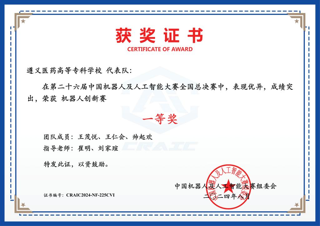 在这收获的季节里,我们迎来了一个令人振奋的消息!在刚刚结束的第二十六届中国机器人及人工智能大赛全国决赛中,我校卫生管理系的“杏林星舟”团队(指导老师:崔明、刘家,参赛学生:王茂悦、王仁会、帅起欢)以其卓越的表现脱颖而出,荣获机器人创新赛组别国家赛一等奖。