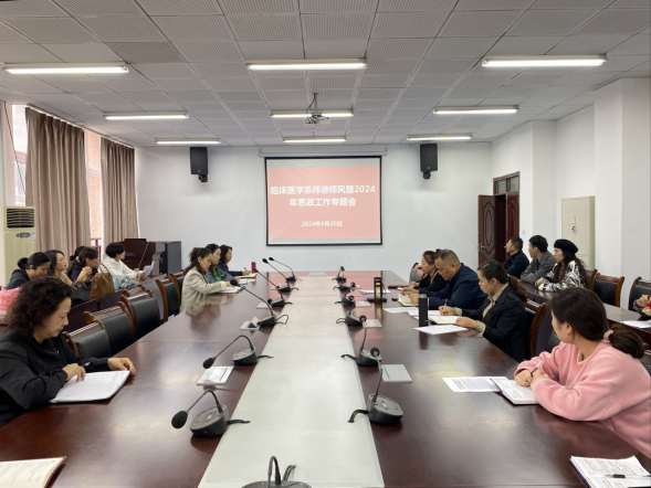 强国必先强教,强教必先强师。为深刻学习领会习近平总书记关于教育的重要论述,进一步加强师德师风与思政工作建设。2024年9月20日,临床系在系C202会议室举行师德师风暨2024年思政工作专题会,临床系党总支书记陈晓玉主持会议,全体教职工参加会议。