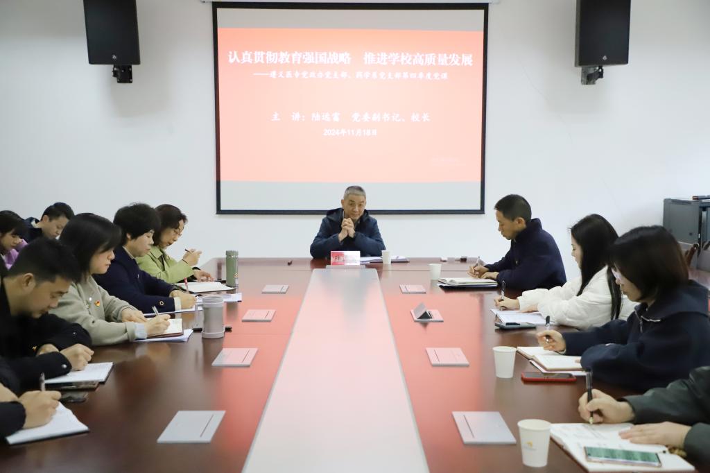 11月18日下午,学校党委副书记、校长陆远富到药学系为学校党政办党支部、药学系党支部全体党员讲授题为《认真贯彻教育强国战略 推进学校高质量发展》的专题党课。