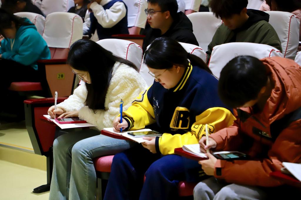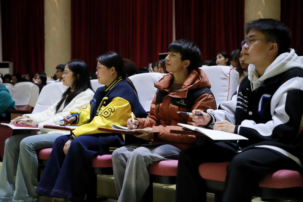 培训开始,陈涛向同学们讲述了袁隆平院士与钟南山院士的事迹,引导大家学习两位院士热爱党、热爱祖国、热爱人民的崇高品格,鼓励同学们在学习中秉持不怕困难、勇于探索、敢于实践的精神。随后,陈涛向同学们讲述了周恩来总理的故事,他谈到,周总理也曾历经迷茫与焦虑,却在生活的磨砺中完成蜕变。他教导同学们在面对困境时应坦然接受考验,找准自身定位与前进方向,并坚定地走下去。此外,陈涛结合自身驻村经历,向同学们展现了基层村干部热爱党和人民的优良作风。最后,陈涛寄语同学们:“青春因奋斗而闪耀,新时代青年应顺应时代潮流,勤奋努力、拼搏进取,为实现中华民族伟大复兴携手奋进。”
