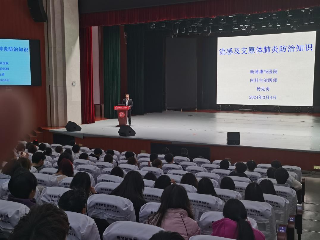 为提升师生健康意识,强化校园传染病防控,3月4日,学校邀请新蒲康兴医院内科主治医师杨先勇,在大礼堂开展关于流感及支原体肺炎防治知识的健康讲座,全校各教学系学生积极参与其中。