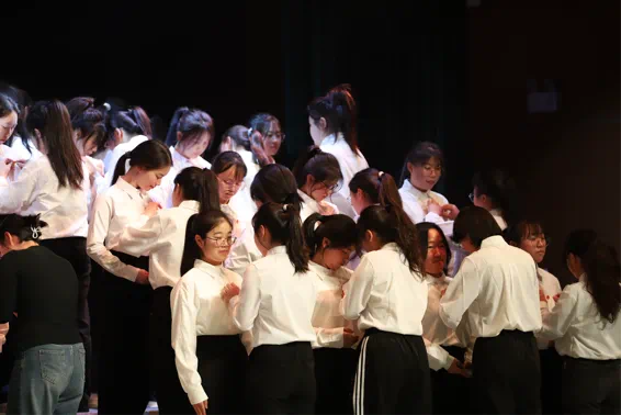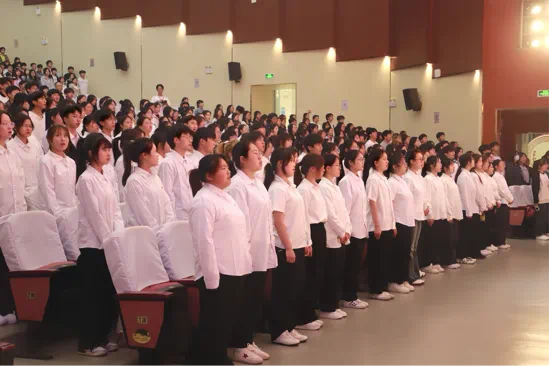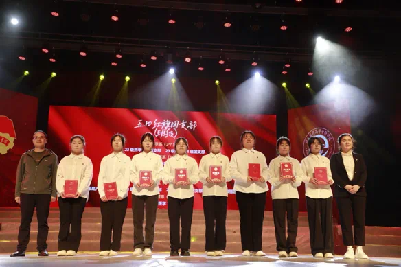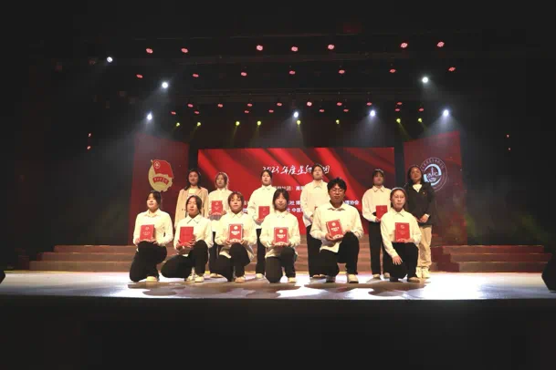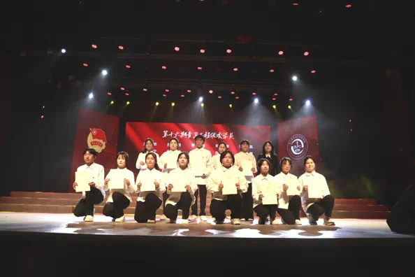 入团仪式后,歌曲《世界赠予我的》舒缓而振奋,为表彰环节营造了良好氛围。大会依次对“2024年度星级社团”“第十六期青马工程优秀学员”“优秀共青团员”代表、“优秀学生团干部”代表、“五四红旗团支部(班级)”“五四红旗团支部(总支)”“优秀教师团干部”进行了表彰,肯定了这些先进集体和个人在过去一年里为学校共青团事业和校园文化建设所做出的突出贡献。在欢快激昂的歌曲《好风起》中,大会逐渐接近尾声。最后,全体人员起立,共同奏唱《光荣啊!中国共青团》,歌声铿锵有力,唱出了青年一代的责任与担当。