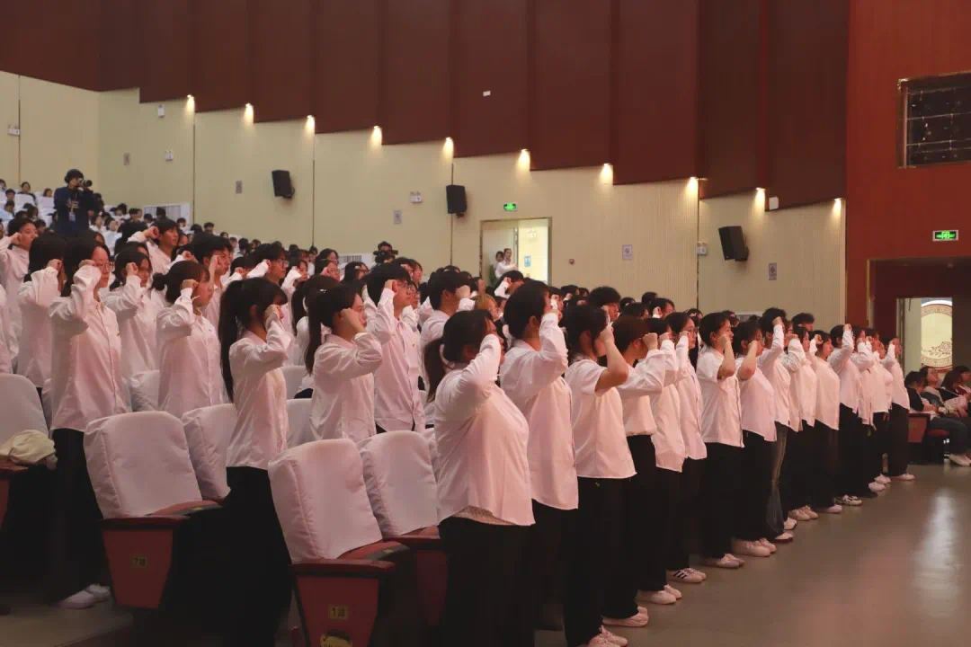 入团仪式在庄严的国歌声中开始,伴随着雄壮的音乐,全体师生起立奏唱国歌。在宣布新团员名单后,出席活动的团干部向新团员代表佩戴团徽,接着新团员面向团旗进行了宣誓,他们高举右手,目光坚定、慷慨激昂,向团组织表明自己的的坚定决心。新团员代表和优秀团员代表陆续发言,她们由衷感慨佩戴在胸前的不仅是枚团徽,更是沉甸甸的责任,今后要坚定不移听党话、跟党走,争做有理想、敢担当、能吃苦、肯奋斗的新时代好青年。党员代表鼓励新团员继承和发扬五四精神,能在共青团这所大学校里认真接受政治训练、加强政治锻造、追求政治进步,积极向党组织靠拢,在推进强国建设、民族复兴伟业中勇当突击队、争当先锋队。