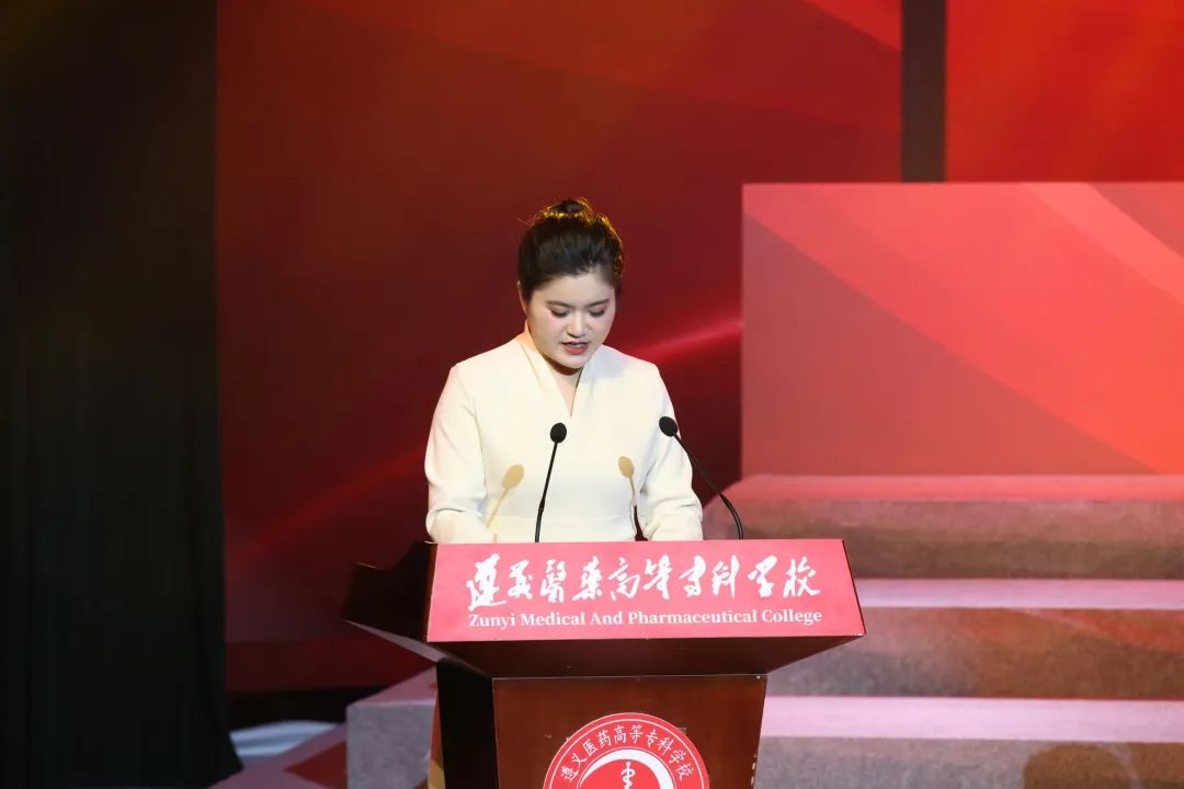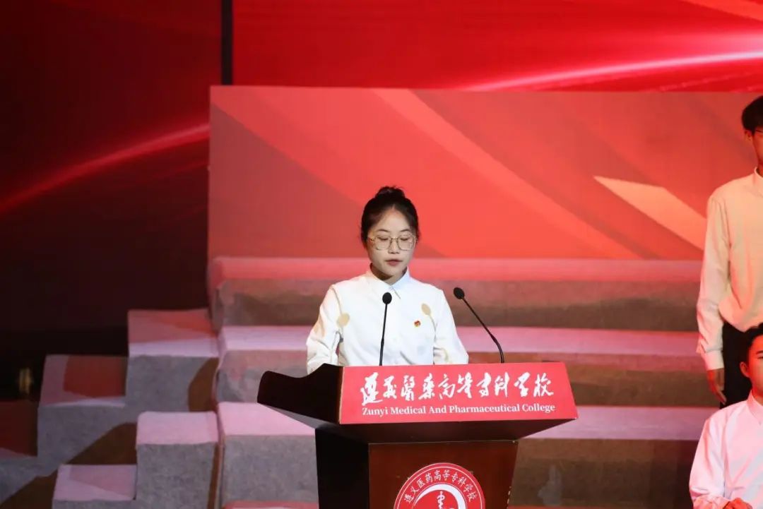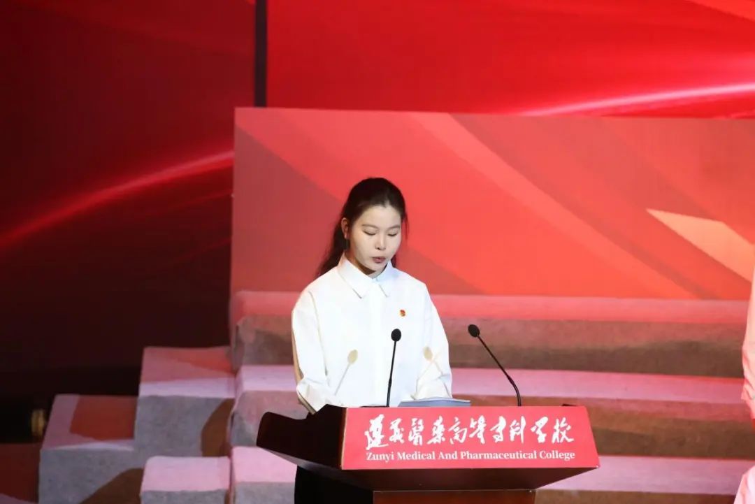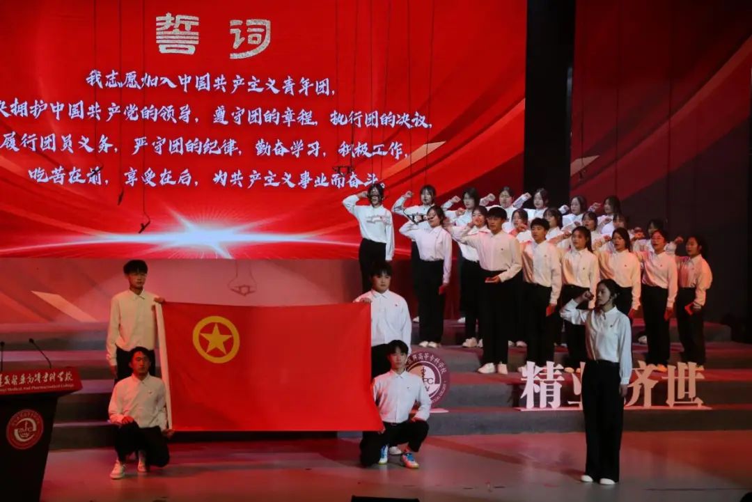 新团员代表张星语和优秀团员代表张昱晓进行了发言,分享了她们的感悟和对共青团的理解与认识。仪式最后,学校党委书记俞松对全体团员提出了深切的期望与明确的要求。他指出,新时代新征程上,同学们肩负着民族复兴的伟大使命,个人命运是与国家命运紧密相连的,要将个人理想融入国家发展大局,以先辈为榜样,到祖国最需要的地方去,用所学之长服务人民,为建设健康中国而努力奋斗。