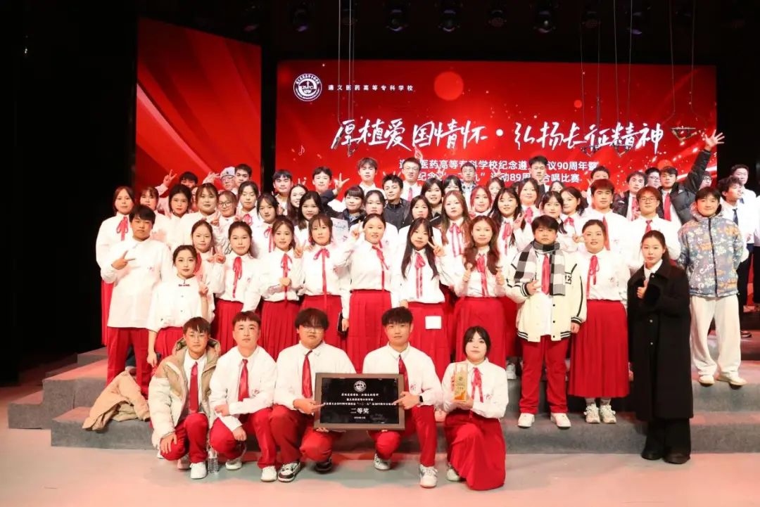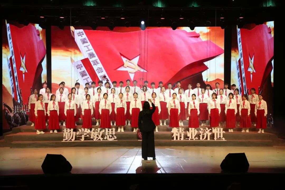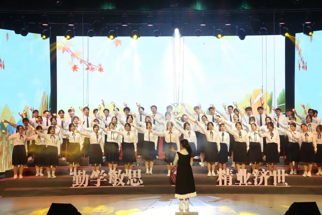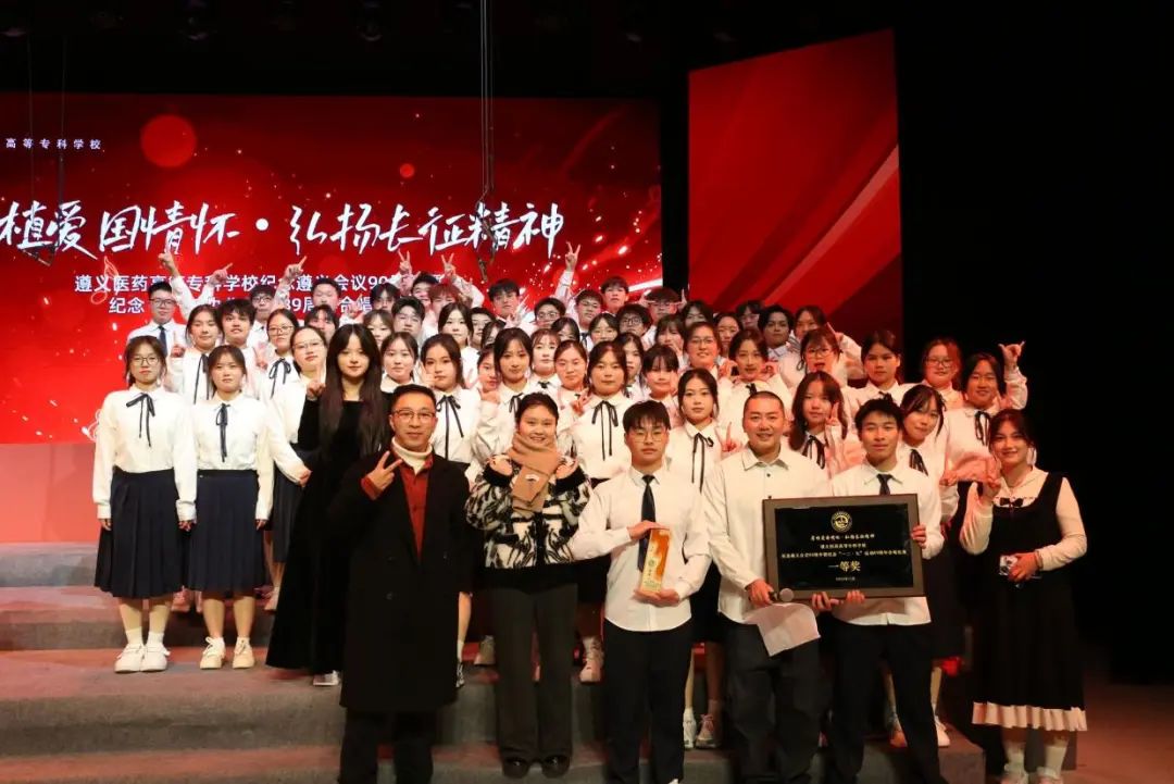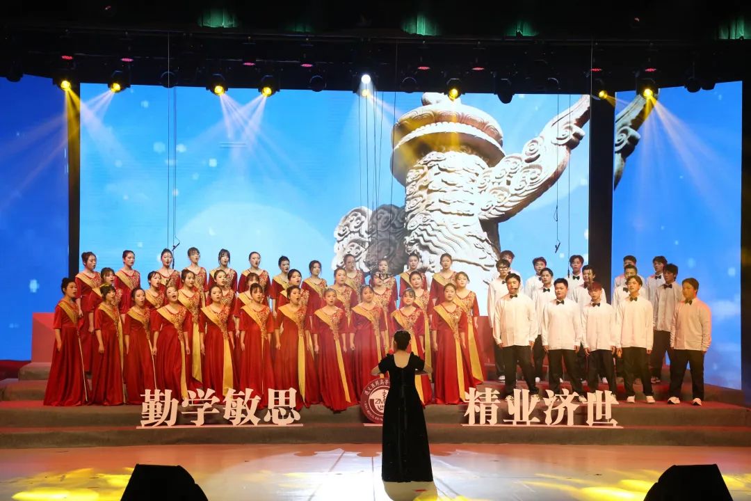 仪式结束后。罗小叶与王梦洁带来的女声二重唱《遵义会议放光辉》以悠扬且饱含深情的歌声拉开了合唱比赛的序幕。各系部的同学们则以歌声为媒介,深情缅怀先辈,传承红色基因,用激昂的旋律奏响时代最强音。各系部师生选择的歌曲各具特色,旋律优美,各参赛队伍着装整齐,精神抖擞,展现了学生们深厚的爱国情怀和积极向上的精神风貌。他们的表演不仅展现了扎实的演唱功底,更体现了团队协作的精神,赢得了台下观众的阵阵掌声与喝彩。此外,留学生们别具一格的表演也成为了一大亮点,他们用中文演唱《青春修炼手册》,青春的活力与热情在舞台上肆意绽放,为整个活动增添了一抹别样的色彩,也展现出多元文化在校园里交融碰撞的独特魅力。