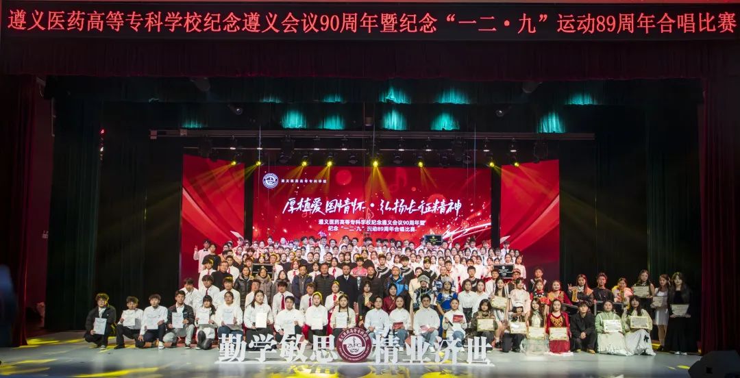 12 月9日晚,我校纪念遵义会议 90 周年暨纪念“一二·九”运动 89 周年合唱比赛在学校大礼堂隆重举行。学校党委书记俞松及在家领导班子成员,各处室(系部)负责人,团学工作指导老师和辅导员参加本次活动。