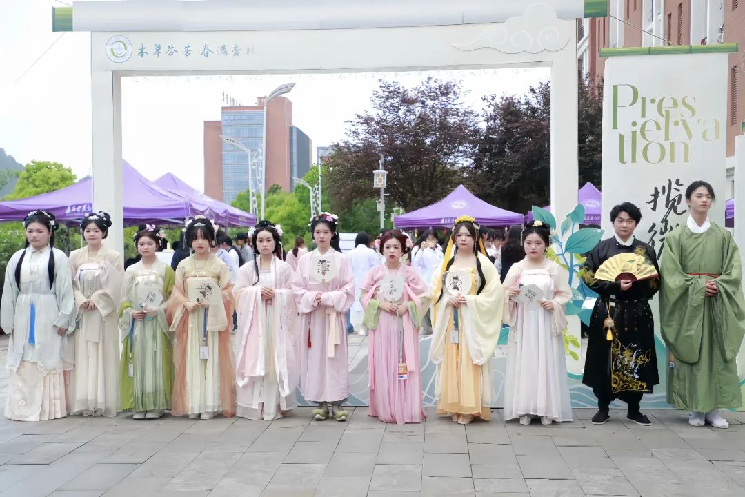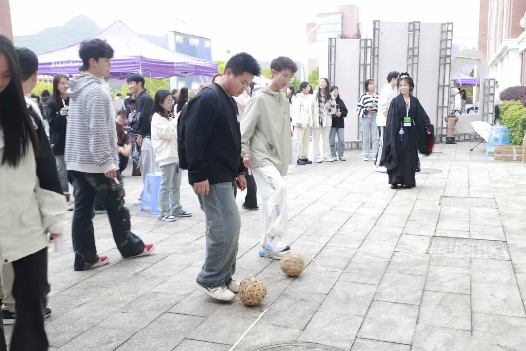 活动现场,中国华服巡游率先登场,身着传统华服的队伍穿梭其中,展现出独特的东方韵味,吸引众多同学目光。投壶、蹴鞠等传统游戏区域热闹非凡,同学们积极参与,在娱乐中感受古人的休闲之趣;猜灯谜、猜中药环节更是考验大家对传统文化知识的储备,现场气氛热烈。